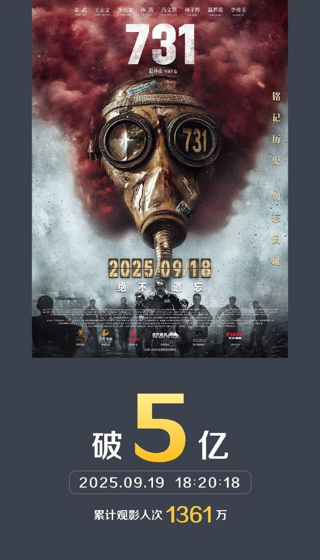 电影“ 731”的票房超过5亿!首映日期的观众人数